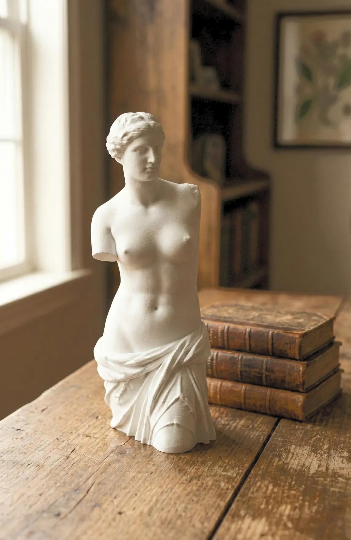 This piece captures the elegance of classical sculpture, 3D printed in a premium matte white or light marble finish that mimics the look of traditional plaster or marble but with a lightweight, durable modern construction. It is the perfect accent piece for a bookshelf, desk, or mantel, adding a touch of Dark Academia or minimalist sophistication to any room.